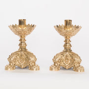 Enhance your sanctuary and prompt a richer prayer experience through a beautiful symbolism of the light of a candle and the crucifix. This Baroque Style Solid Brass Crucifix and Candlesticks Altar Set will add beauty and elegance to your chapels or sanctuaries. The candlesticks and crucifix are made with high quality Solid Brass to ensure that it will last for the years to come!
