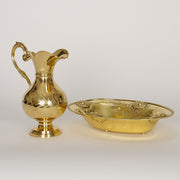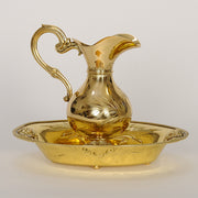 Discover the luxurious and ornate Bishop Ewer and Basin Set! Made of solid brass, it boasts beautiful Angel and Cherub medallions on the basin. The intricate design is further enhanced by engraved and embossed decoration. With a generous size and elegant silhouette, the bowl and matching pitcher make for a stunning set to be used in a church setting.