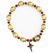 - Topaz And Red Poinsettia Stretchable Rosary Bracelet