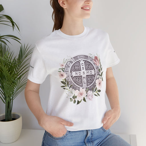 View full detailsBenedictine Medal T-Shirt – Catholic Faith Floral Tee