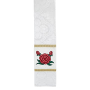 This exquisite Villa De Guadalupe Collection Gothic Style Chasublen features a vibrant image with gold accent embroidery, a round neckline, and finished with gold lace trim. This crafted to be easy-care, smooth weave polyester makes it drape beautifully.