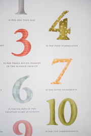 Teach your little ones to count while planting seeds of faith with our Catholic 123 Poster, a joyful and meaningful way to introduce your children to the core truths of our Faith. From 1 is for One True God to 10 is for the Ten Commandments, each number is paired with a beautiful truth of Catholic teaching, making counting time both fun and formational.