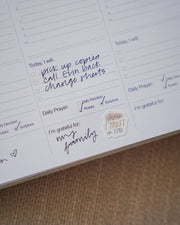 These mini planner stickers encompass spiritual activities such as "holy hour" and "bible study," as well as essential daily reminders like "trash day" and birthdays.