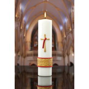 This candle is perfect use for small gatherings during formation, as a commemorative gift or as a keepsake for the home. This SCULPTWAX creation is hand decorated with symbolic raised wax relief symbols.