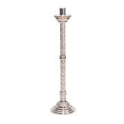 The classic and timeless design of the 48" Ornate Paschal Candlestick makes it a perfect addition to any church setting! This traditional candlestick stands at 44" tall (47" with socket) and features a 8" drip plate diameter and 11" base diameter. With a weight of 14.4 lbs, it is solid and sturdy, ensuring it will last for years to come.