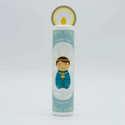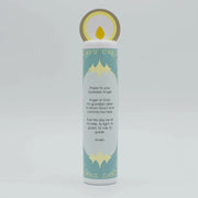 Each candle is printed with beautiful religious artwork on the front, and a corresponding traditional Catholic prayer on the back. Candle without flame disc measures 6 inches tall.