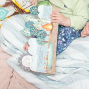 Book measures roughly 6 inches tall and 6 inches wide with thick board book pages in different shapes to create a 3D landscape! There are five spreads in total, plus the front and back covers.