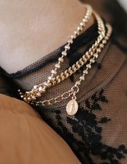 - Design: Dainty beaded chain paired with a classic link chain for a layered look