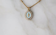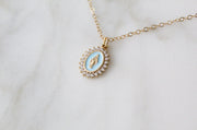 - 18K gold-filled Little Blue Mary charm with blue enamel accents.
