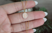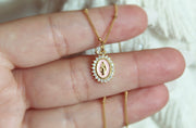 - 18K gold-filled Little White Mary charm with white enamel accents.