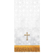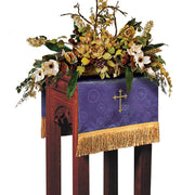 La cubierta para puesto de flores en cruz Millenova® es una cubierta elegante y hermosa para el puesto de flores de cualquier iglesia. Confeccionada en brocado Millenova®, esta funda presenta cruces latinas metálicas doradas bordadas que añaden un toque de elegancia al puesto de flores. La cubierta también está interlineada para una retención duradera de la forma y cuenta con un fleco de oro antiguo de 4" de alto.