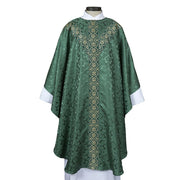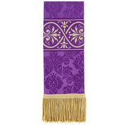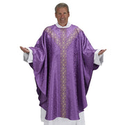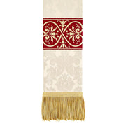 Este juego de casulla está disponible en colores blanco, morado, verde y rojo que cubren varias estaciones.