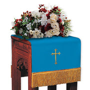 Esta funda reversible para soporte de flores Viva con forma de cruz de flor de lis agregará un toque de elegancia al puesto de flores de su iglesia. Confeccionada en tejido Viva 100% poliéster, esta funda presenta un diseño reversible con una cruz de flor de lis en ambos lados. Tiene un forro interior para una retención duradera de la forma y tiene un flequillo Gold Chainette de 4".