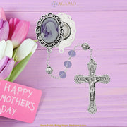 Rosario de Nuestra Señora de Lourdes con camafeo violeta de 8 mm