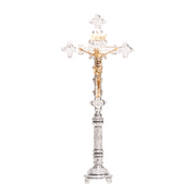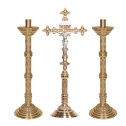 - Juego de altar tradicional con crucifijo y candelabros adornados
