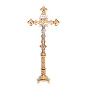 - Este hermoso juego de altar incluye 2 piezas de candelabro de altar H-98-24 y 1 pieza de cruz de altar H-98B .