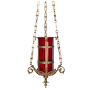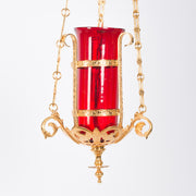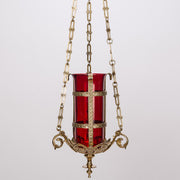Esta lámpara colgante tradicional del Santuario de 34" está diseñada exclusivamente y finamente hecha a mano por Adrian Hamers. Encienda esta lámpara del Santuario ante un tabernáculo. Una excelente manera de iluminar el Santísimo Sacramento y brindar un hermoso brillo a la Luz del Mundo en el Tabernáculo.