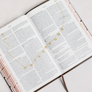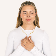 As you wear this necklace, let its delicate beauty reflect the truth of your identity in Christ. You are a beloved child of God, embraced by His grace and eternally loved.