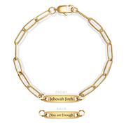 'Jehovah Jireh, You are Enough' Engraved Paperclip Bracelet in Gold and Silver