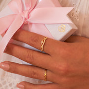 Minimalistic ring fits around your finger for the perfect adjustable fit. Matches beautifully with any jewelry and perfect for layering with other rings.