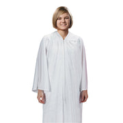 Esta bata de confirmación hecha con satén de poliéster cuenta con una cremallera completa para facilitar su uso. Esto seguramente capturará el espíritu encantado de su hijo el día de la Confirmación. Esta túnica es perfecta ya que su hijo se enorgullece de afirmar su fe y se usa tradicionalmente al recibir la Santa Cena.