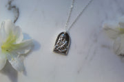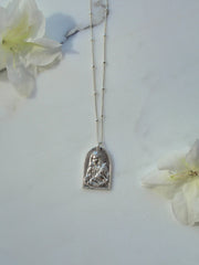 Available with a choice of a classic ball chain or an elegant flat chain, this piece is designed to be a gentle reminder of faith, hope, and the quiet strength found in prayer.