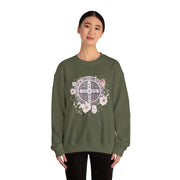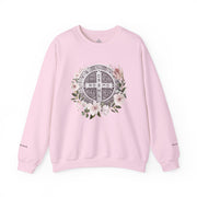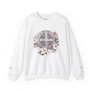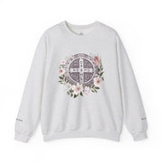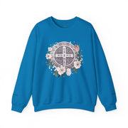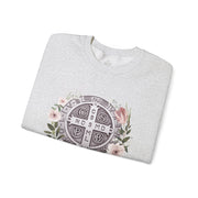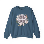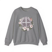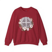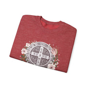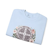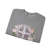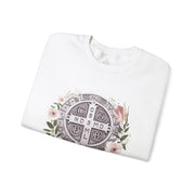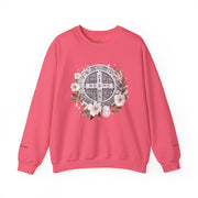 St. Benedict Medal Crewneck Sweatshirt – Catholic Faith Floral Sweatshirt | Cozy Spiritual Protection Apparel