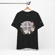 Benedictine Medal T-Shirt – Catholic Faith Floral Tee with Ora et Labora/Prayer and Work