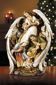 15"H Guardian Angel and The Holy Family Figurine Scene