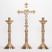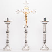 - This beautiful altar set includes 2 Pieces H-98-18.5 Altar Candlestick brass, silver plated or gold plated finish and 1 Piece H-98B Altar Cross brass, silver plated or gold plated finish.