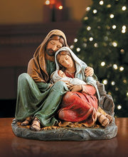 - A detailed figurine of the Holy Family admiring Little Jesus.