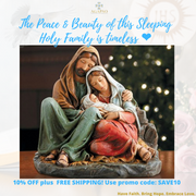 Experience this beautiful Figurine Sleeping Holy Family that measures 6" H and brilliantly portrays The Blessed Virgin Mary, and St. Joseph admiring Little Jesus. This makes a breathtaking gift-giving to explain our belief and also an ideal for home decoration for this Christmas!