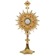 We have many from Antique monstrances to newly commissioned Ostensory, Some which can carry the large 6" host. Custom made monstrances are also available according to your requests and budget.