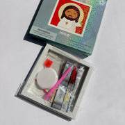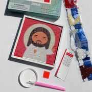 This all-in-one kit lets you create a dazzling gem art piece featuring Jesus on a bold red background—radiant and full of love.