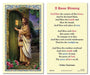 This laminated holy card features a beautiful Catholic image on the front with a distinctive gold foil stamping design around the edge. It includes a prayer on the back and crystal-clear laminating for durability.
