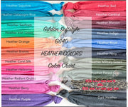 - 65/35 poly/ring spun cotton (Dark Heather, Heather Irish Green, Heather Military Green, Heather Navy, Heather Orange, Heather Purple, Heather Indigo, Heather Royal, Heather Red and Heather Sapphire)