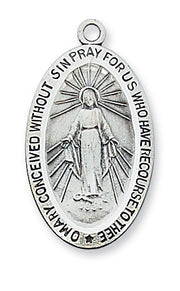 Miraculous Medal Sterling Silver with 18" Rhodium Plated Chain