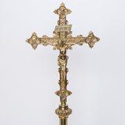 Introducing our stunning Polished Brass Processional Crucifix! This processional cross features a beautifully crafted brass corpus and includes a 50" polished brass pole. Its elegant and durable design measures 20 1/2" in height and 13" in width, making it the perfect centerpiece for any procession. Please note that the base stands are sold separately.