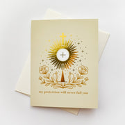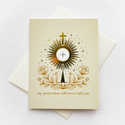 Featuring a monstrance in luxurious gold foil honoring the story of St. Clare of Assisi, this card will surely be a keepsake.