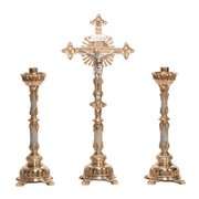 • This beautiful altar set includes 2 Pieces H-108M Altar Candlestick and 1 Piece  H-108B-MS Altar Cross